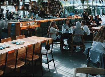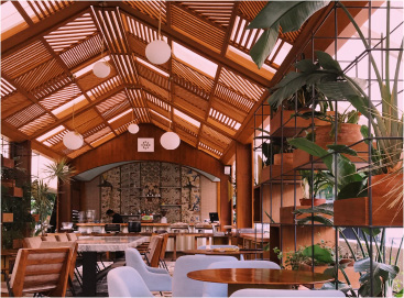 都会の喧騒から切り離された店内は天井が高く開放感がありながら落ち着いたインテリアで統一されています。オープンテラスも併設されているので大人数で訪れることも、一人で気分転換したいときにもぴったりな場所です。